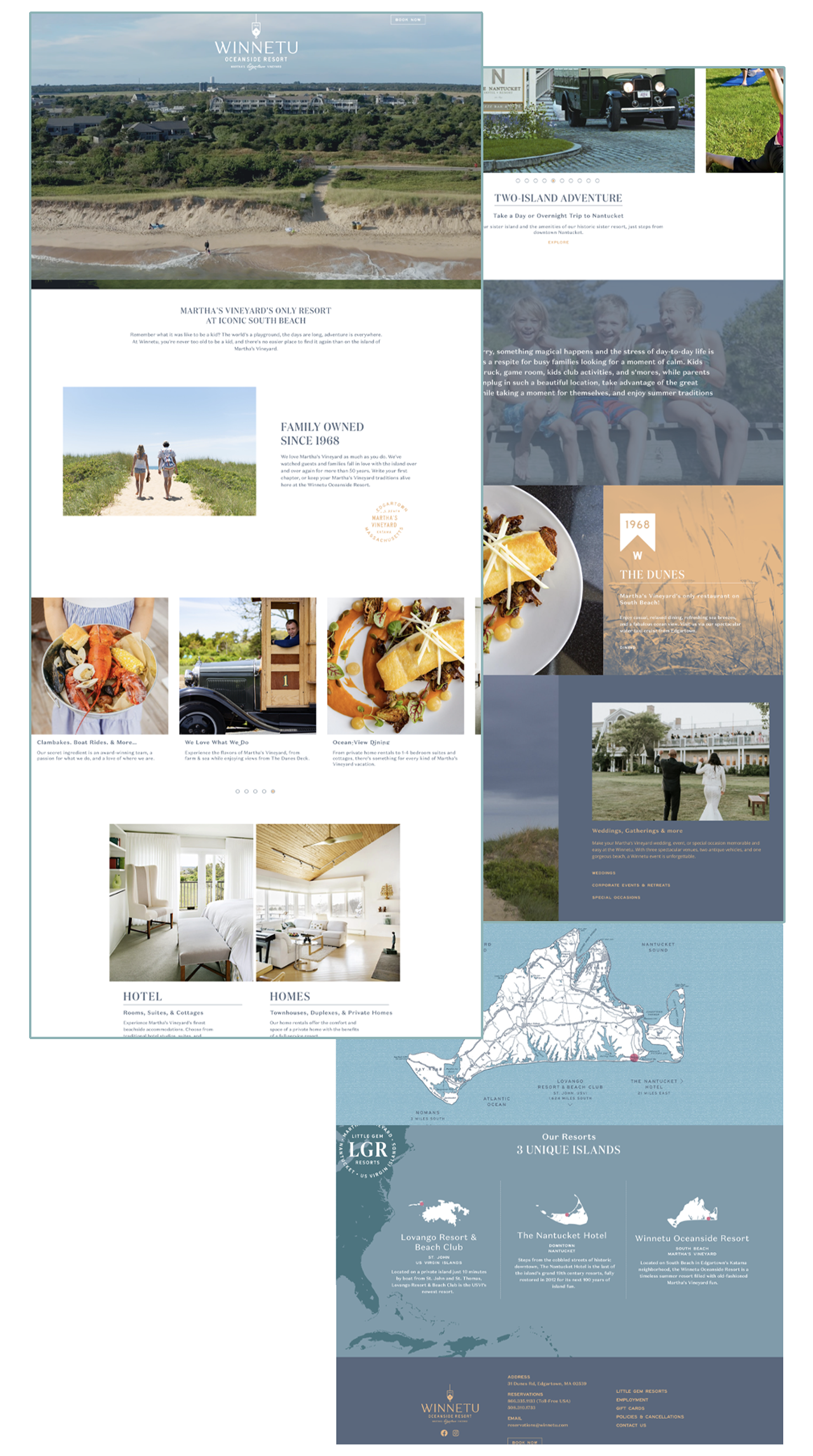 We condensed information on each website whenever possible, streamlining it and improving inter-page navigation to make that information intuitive and functional. A new visual identity was drafted and sculpted to fit the unique needs of each property. Navigation was also improved between the three resorts in order to elevate awareness for the larger collection of hotels.