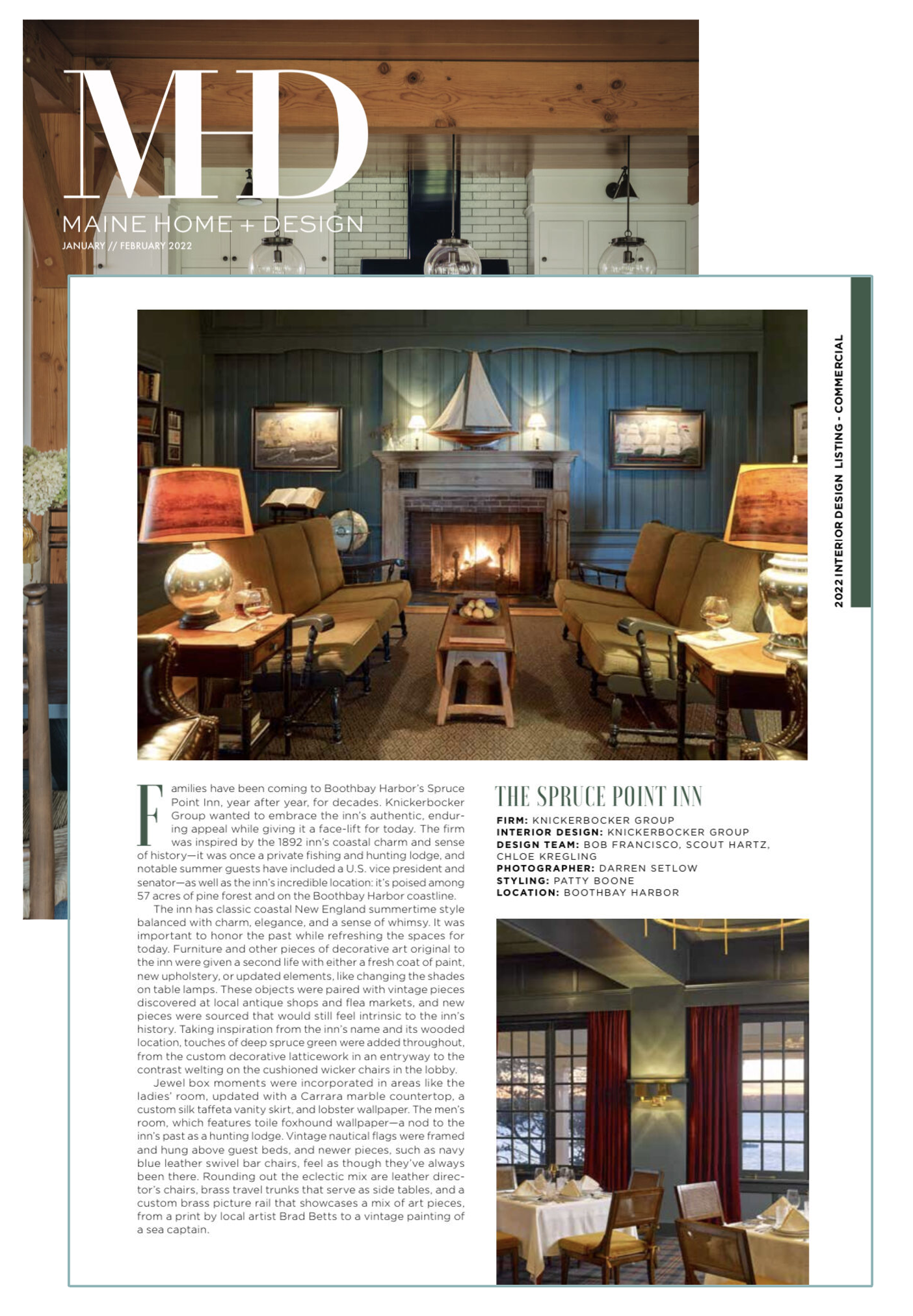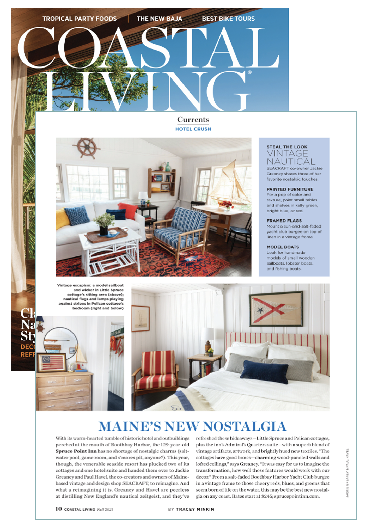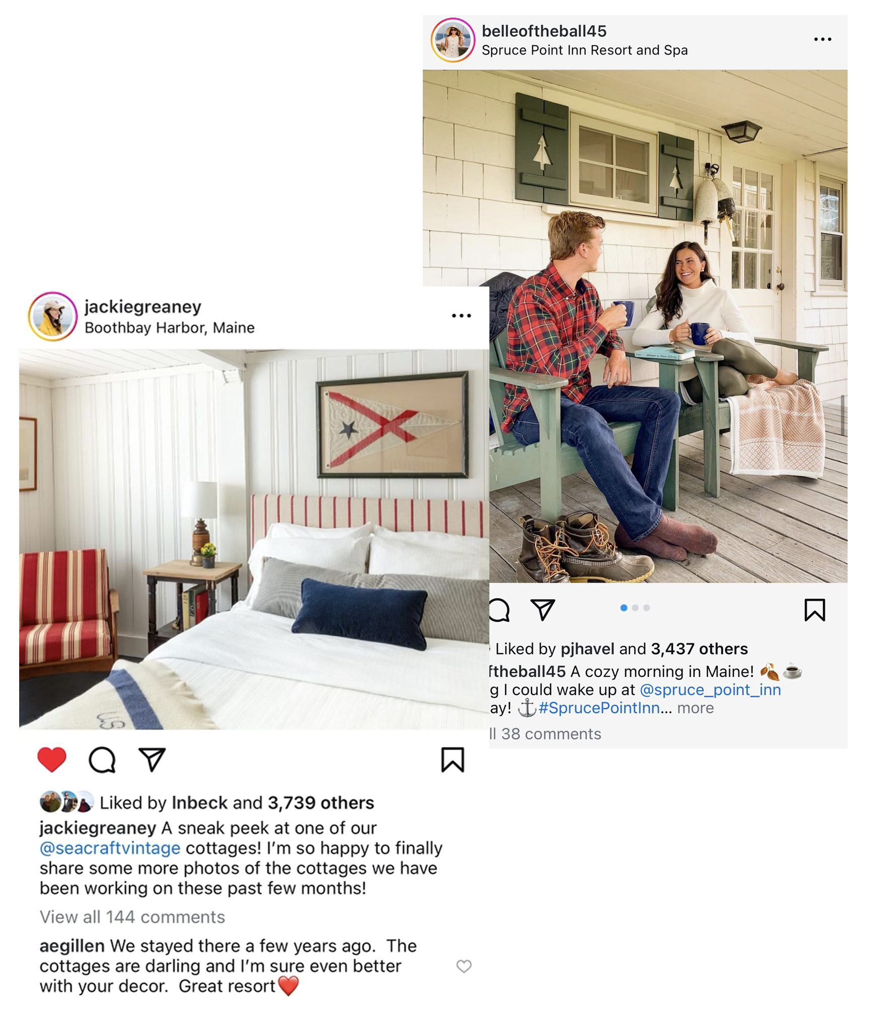 Tapping a pair of Maine-based social influencers and professional antique-pickers (@jackiegreaney & @pjhavel, we reimagined three of Spruce Point Inn’s historic accommodations. The resulting redecoration transformed three historic cottages with bright colors, patterns, and whimsical objects, all rooted in Maine nostalgia and completed on a modest budget.